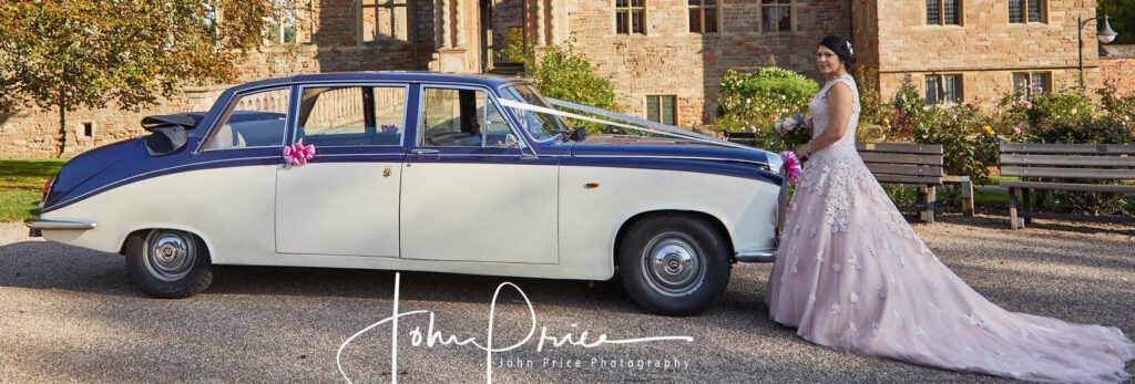 As you can see here, our Daimler Landaulette pairs up very nicely with our 1930’s style part open topped Badsworth which is also in navy & ivory. Similarly it also makes a super addition to any of our other three, seven seater Daimlers for a stately arrival or our other 1930’s style, fully open topped, beautiful, ivory Beauford. The choice is yours but either way it will look impressive singularly or accompanied by the vehicles suggested. Absolutely beautiful & stunning for a Spring or Summer wedding. Cavernous inside for that really voluminous wedding dress maybe.